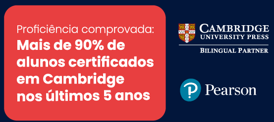 Nossa história vem do berço da educação, construindo nossos materiais e metodologias de forma exclusiva. Combinamos materiais autorais (personalizados para nossos alunos) + internacionais (parceria com Pearson e Cambridge – líderes mundiais no ensino de inglês).